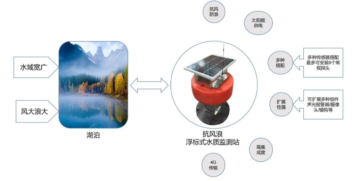 江河、湖泊、水庫等,是水的主要源頭,也是污染物的主要入口,水質監測尤為重要。但此類場景復雜多變,水質狀況難以把控,污染程度存在區域性變化,且系統安裝環境更為復雜惡劣。需要多種類型的系統根據環境情況進行布點搭建。